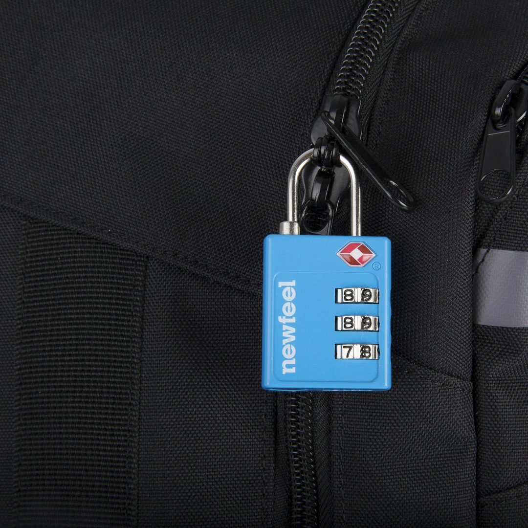 TSA approved, easily identifiable, Newfeel padlock. It allows the airport security authorities to unlock and inspect your luggage without damaging it.