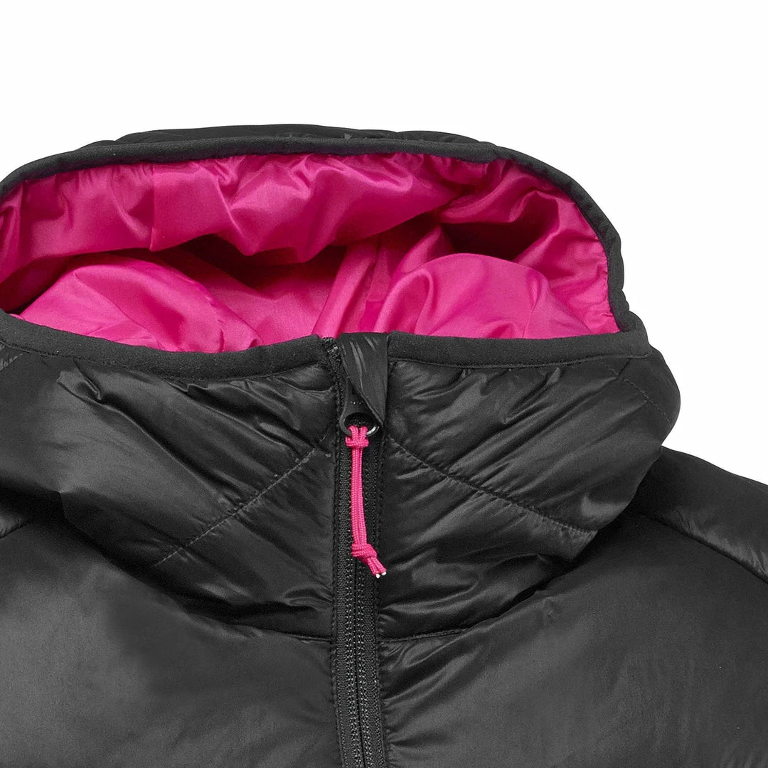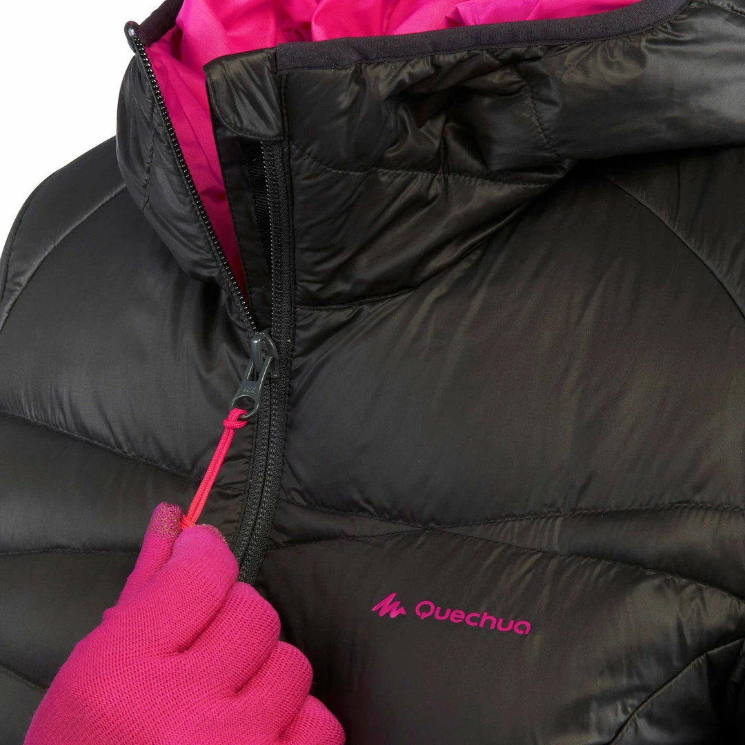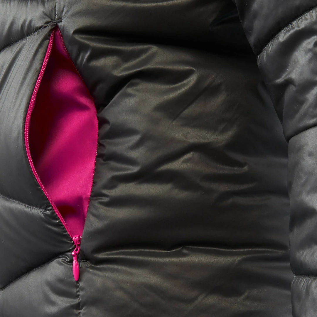 The X-Light down jacket is made with a fine fabric in order to make it lightweight and compact. Note that the feathers can be seen slightly due to transparency on the pink colors in the range.