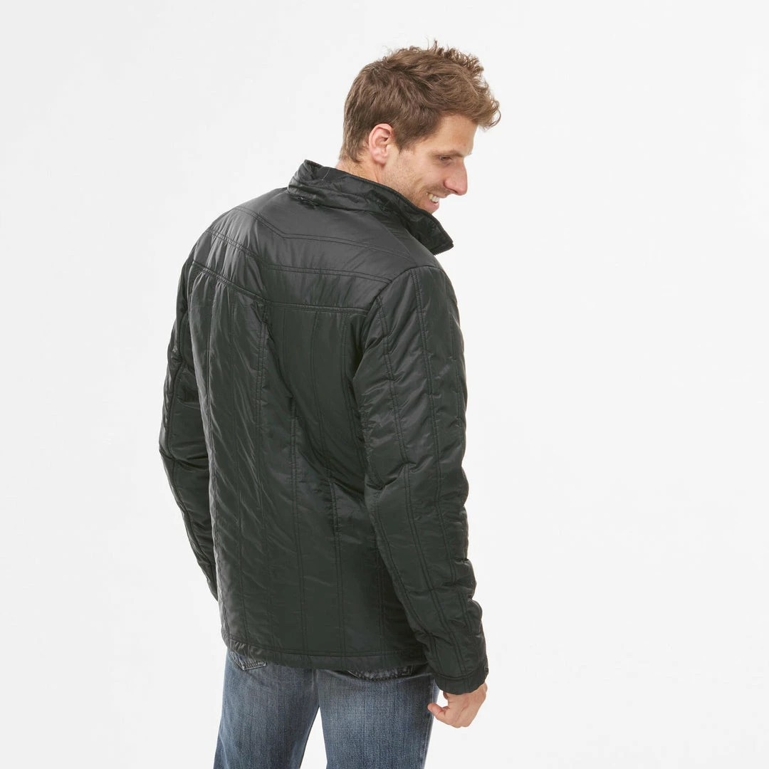 Down jacket filled with insulation with 2 hand pockets and 1 inside pocket with a zipper closure. Elastic drawstrings and toggles at hem. Lycra cuffs to prevent heat loss.