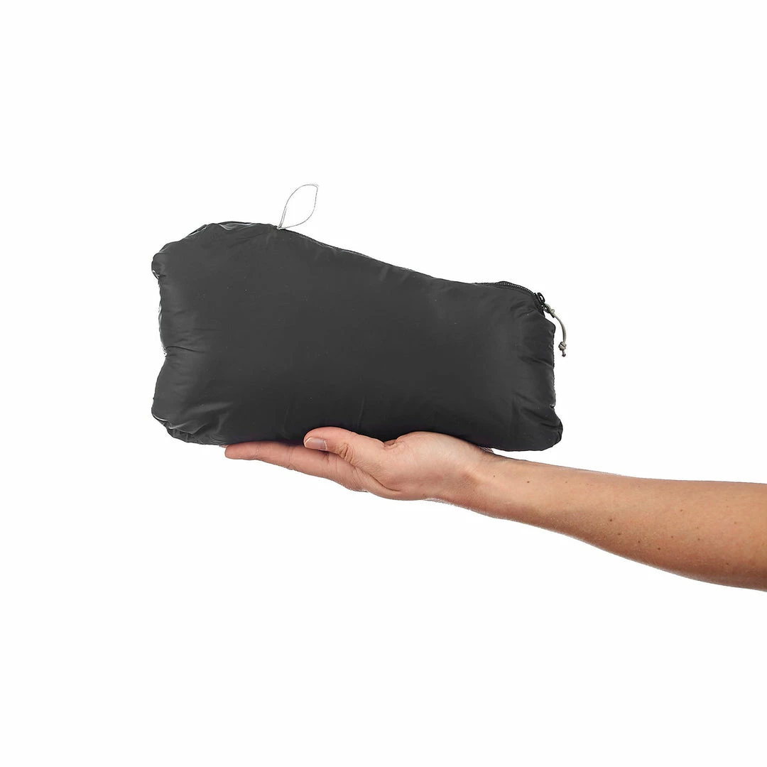 Compact design : Easily folds away into its right-hand pocket using a zipper with double pull.