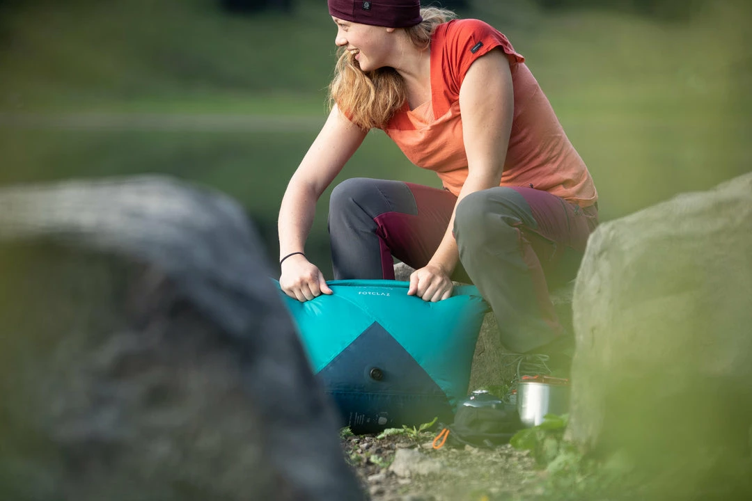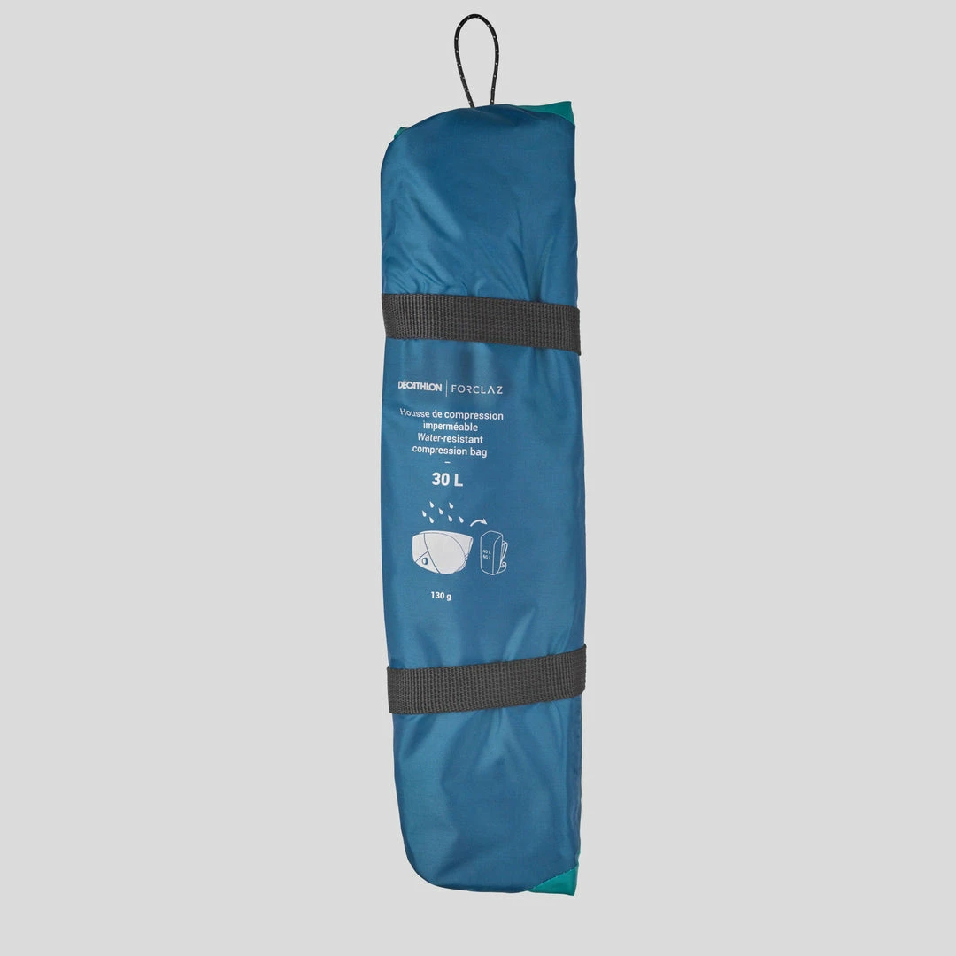 This 30 L coated polyester bag with taped seams is for storing your clothes, saving space in your backpack, once the air is removed from inside, and protecting the belongings from moisture