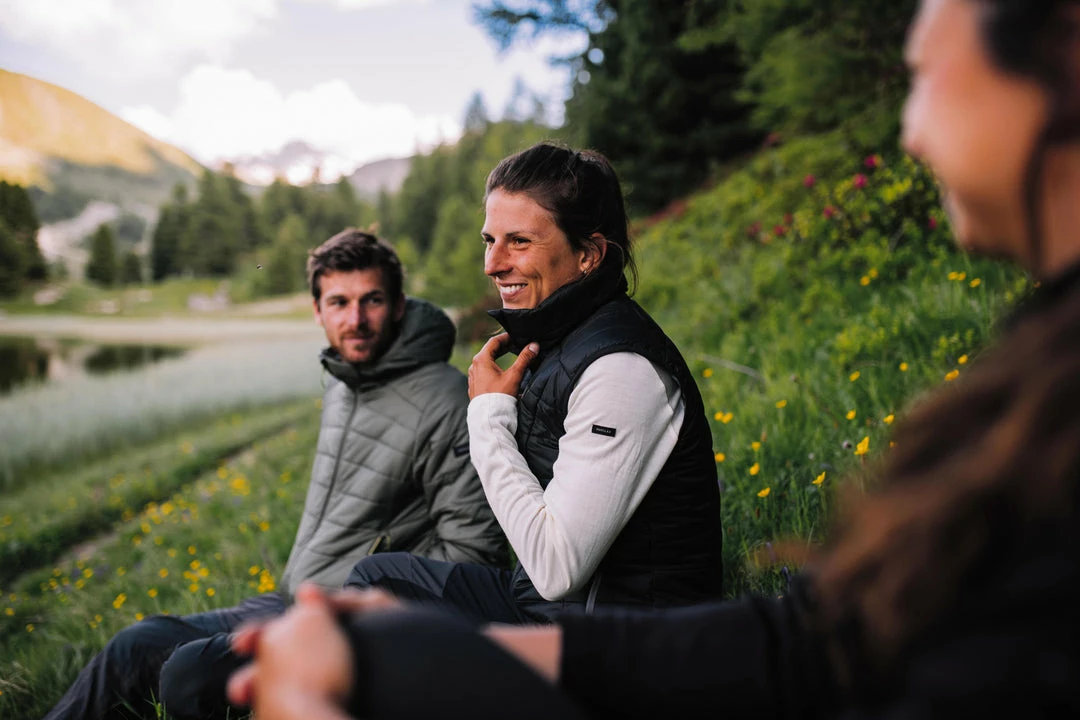This warm, lightweight sleeveless padded jacket is for walking comfortably in cool weather.
