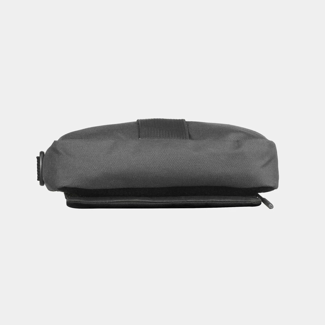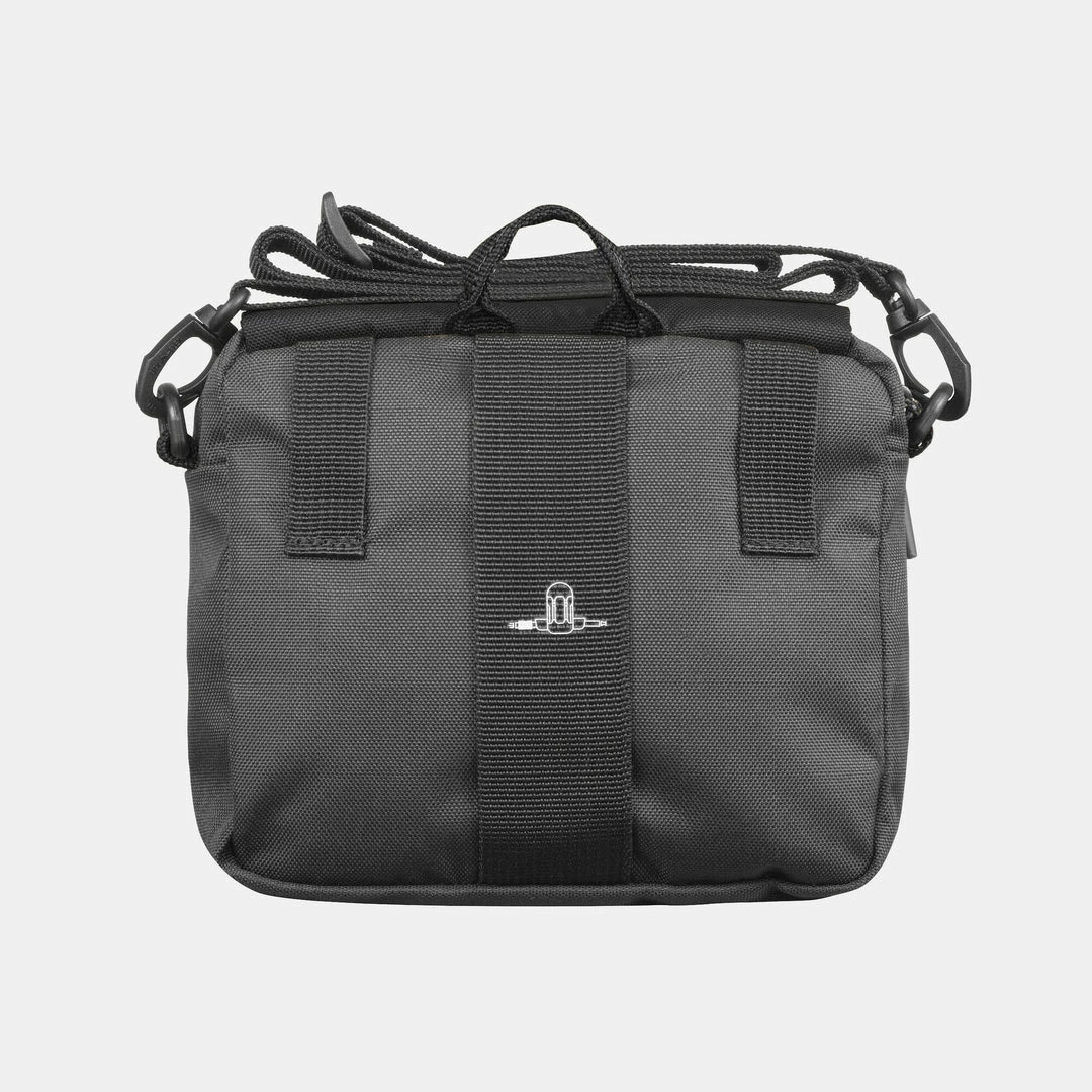 A belt pouch with several compartments. Can be carried around the waist on a belt, fitted to a backpack, or carried over the shoulder.