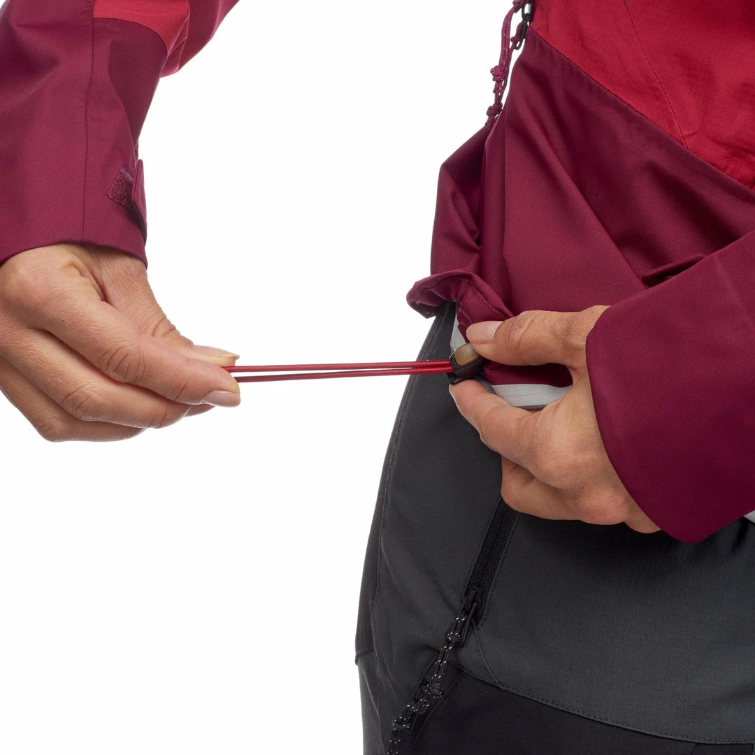 Double tightening with an elastic cord and toggle at the hem.