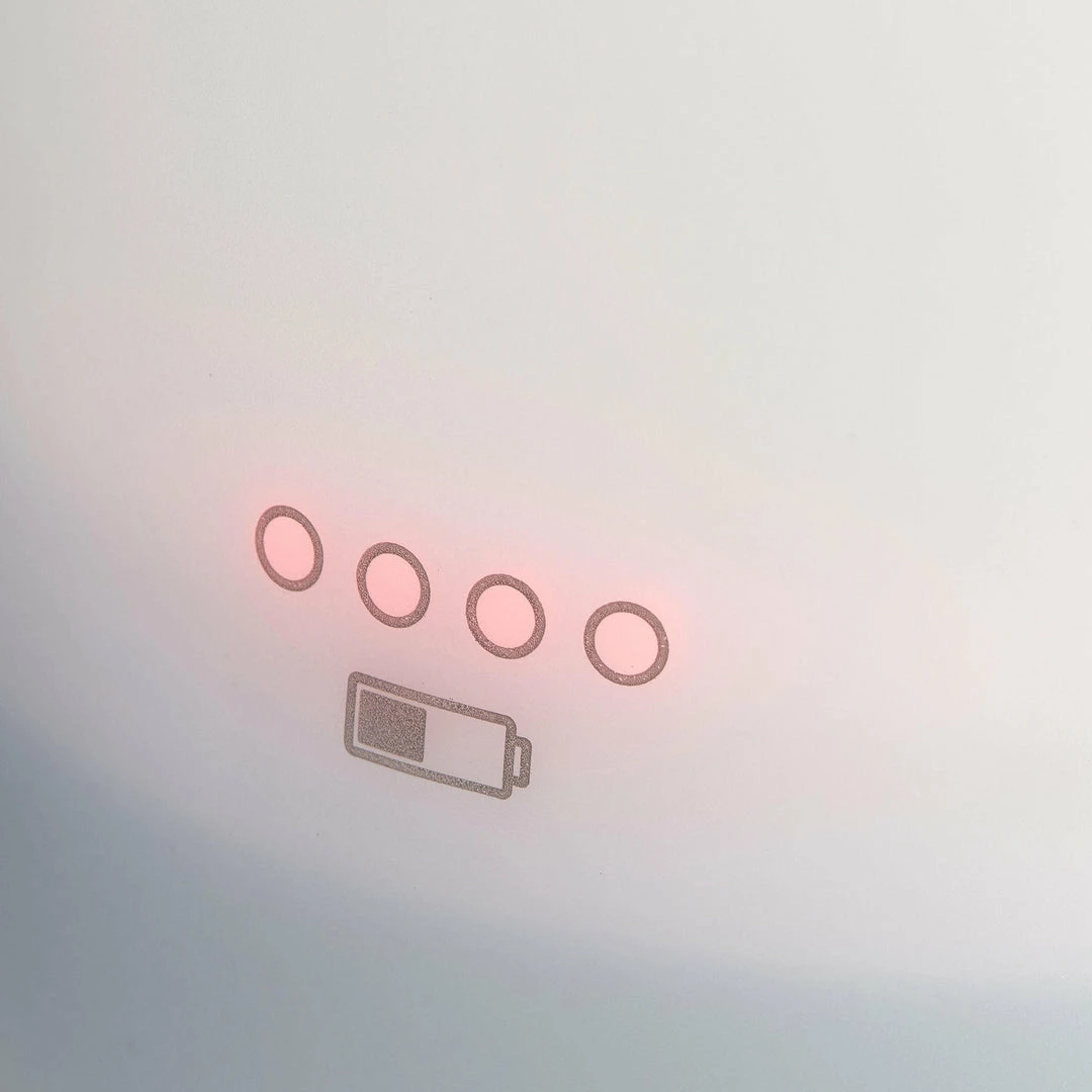 Allow 3 hours 40 minutes for a full recharge on the 220V mains socket. The battery level indicator shows you the battery charge level.