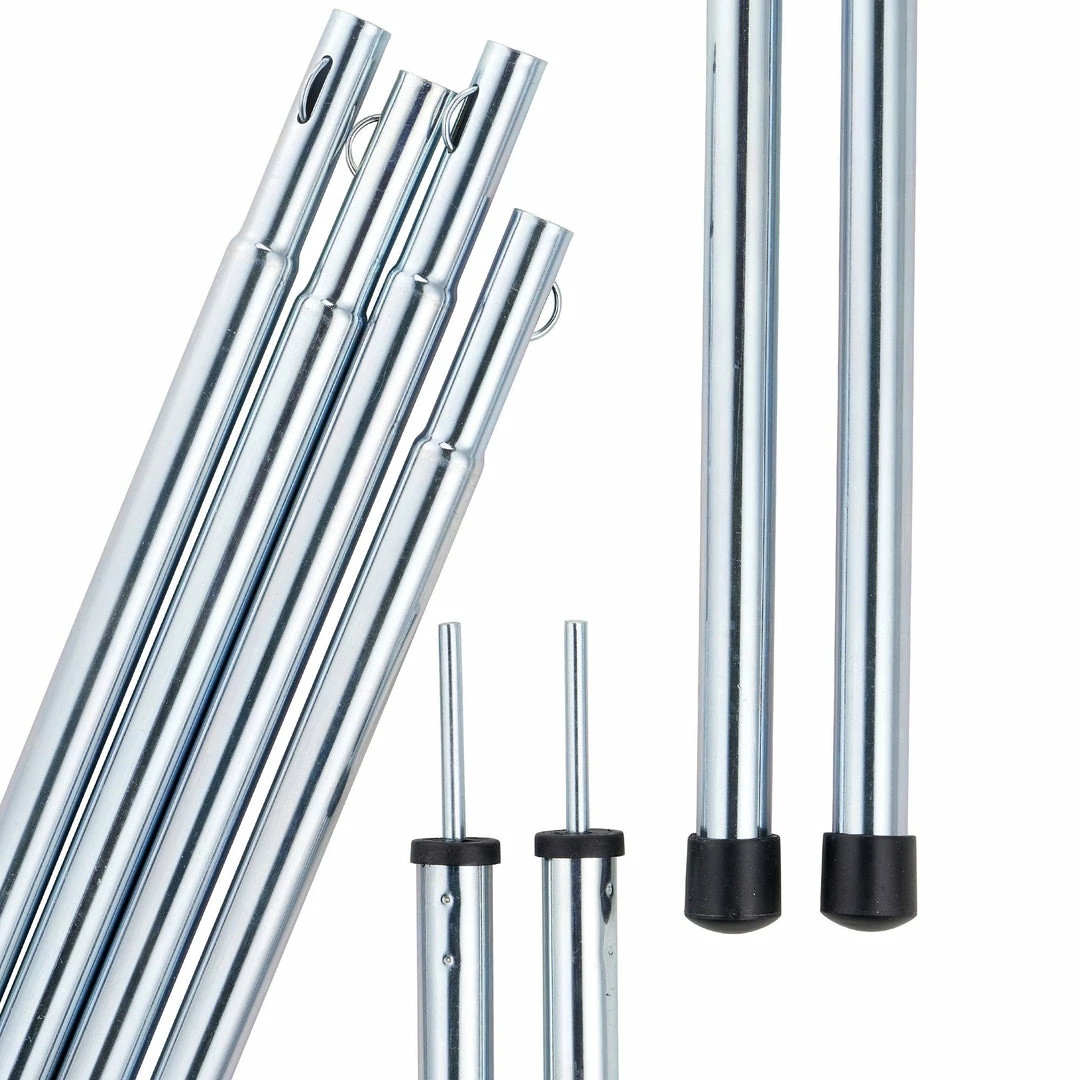 Our motivation? To offer 2 poles for holding a tent awning to create an additional area that is sheltered from the sun and rain.