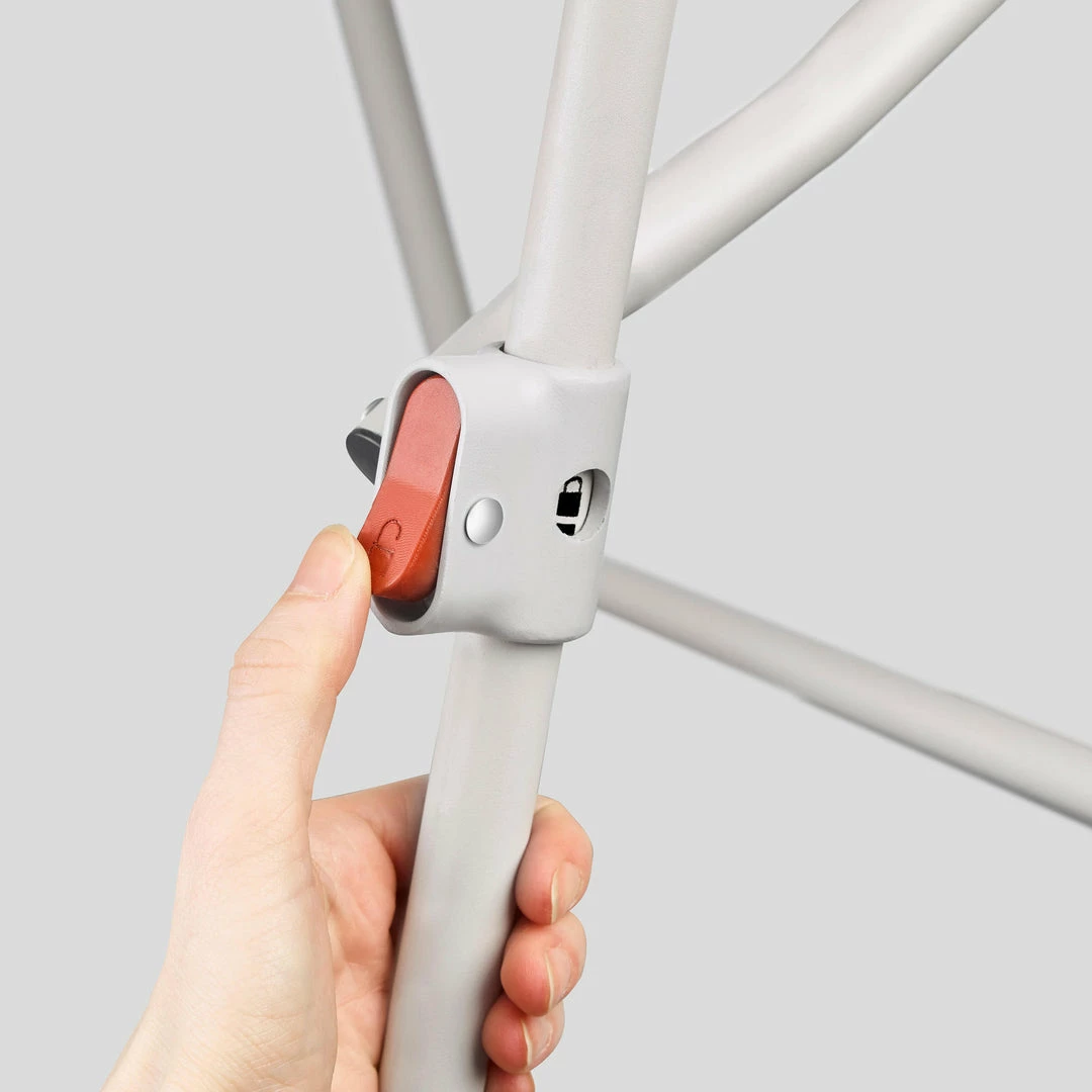 Easy to open/close : Once open, lock the backrest bar and the lock button