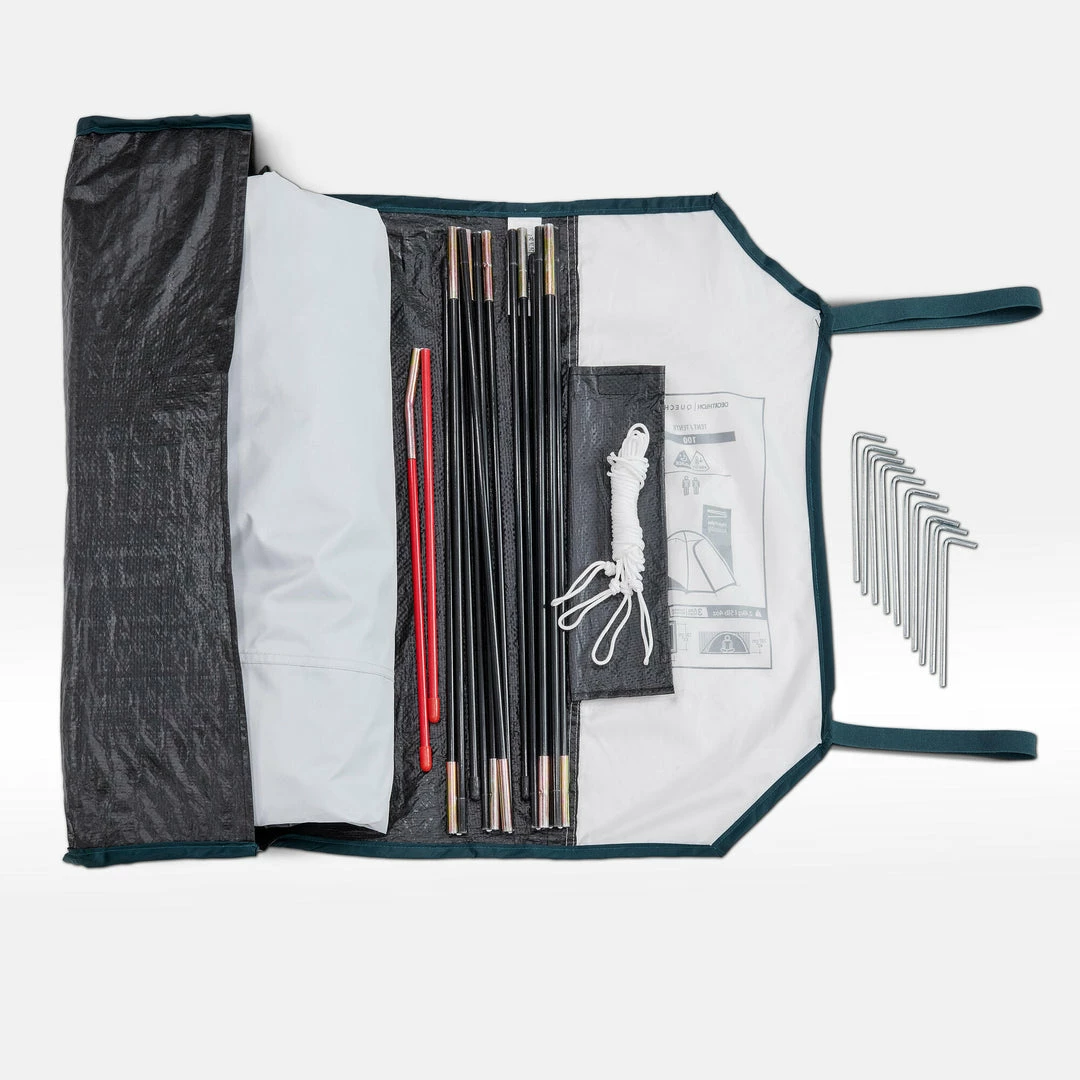 All you have to do is fit the tent poles with the bedroom, followed by the upper tent pole, and finish by fitting the flysheet on the top.