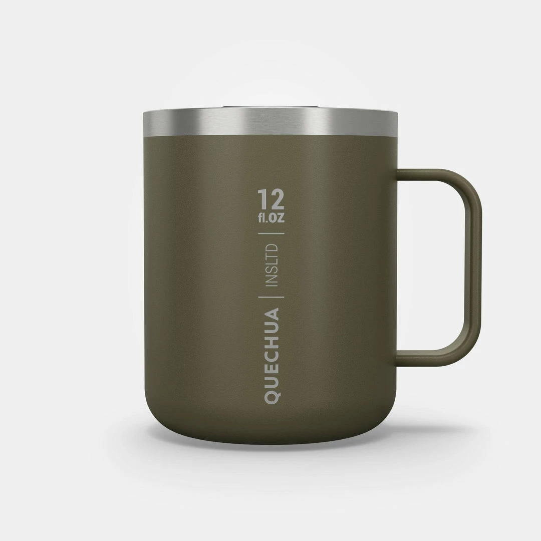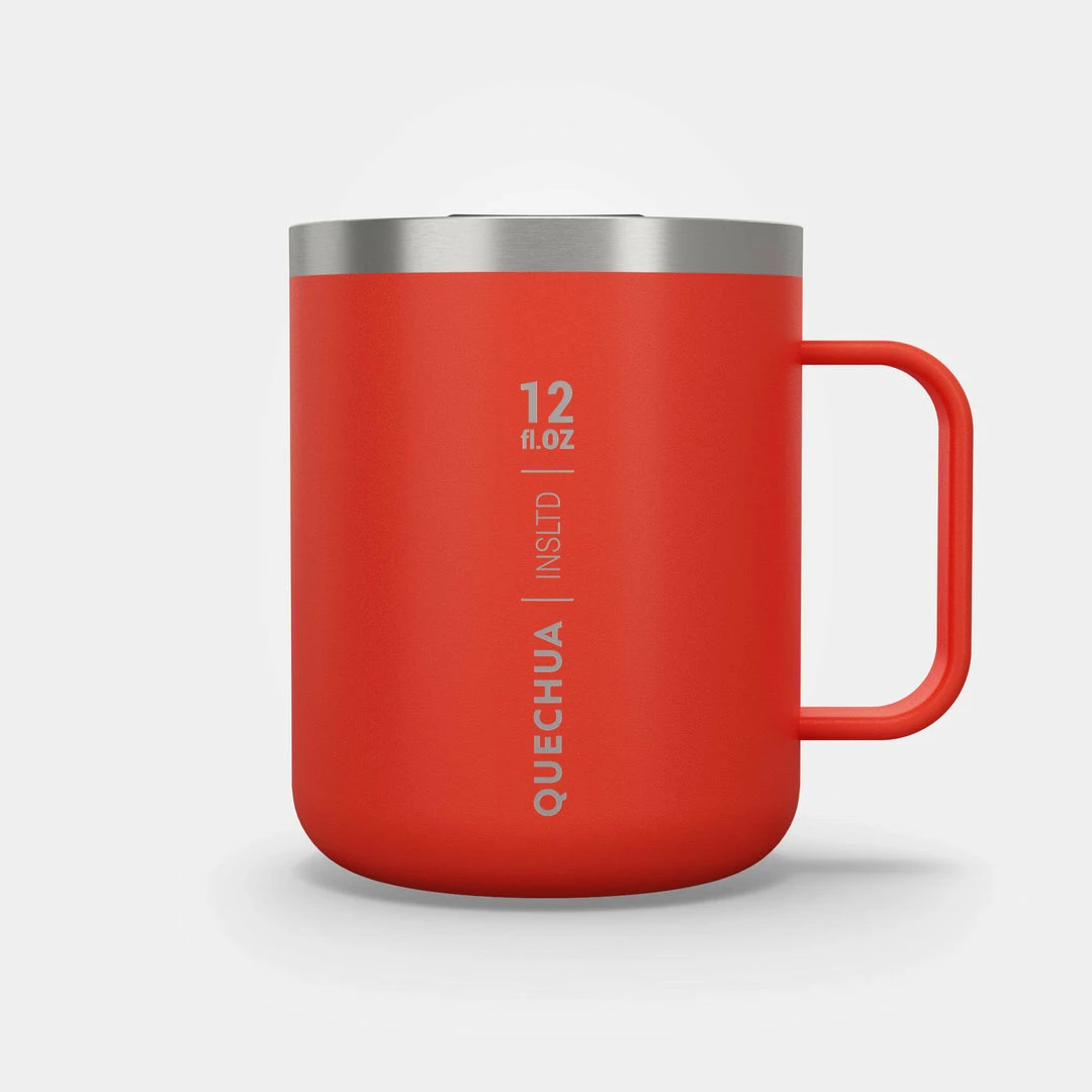Double wall stainless steel structure with air gap: isothermal and durable. Drink without scalding your lips and hands. Cover + carry handle. 0.38 L.