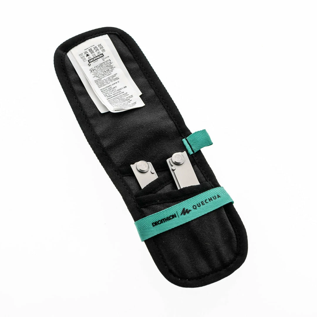The cover holds the spoon and fork and can also accommodate an extra knife for group transport.