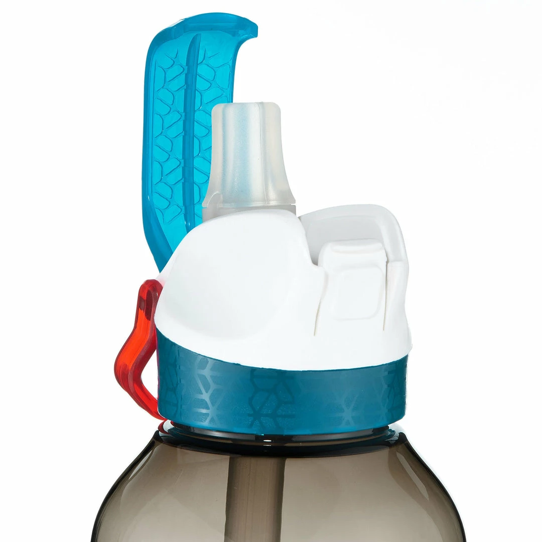 Opens instantly with one hand, with a straw for drinking with your “head straight”, transparent, solid, in Tritan plastic (0.8 L).