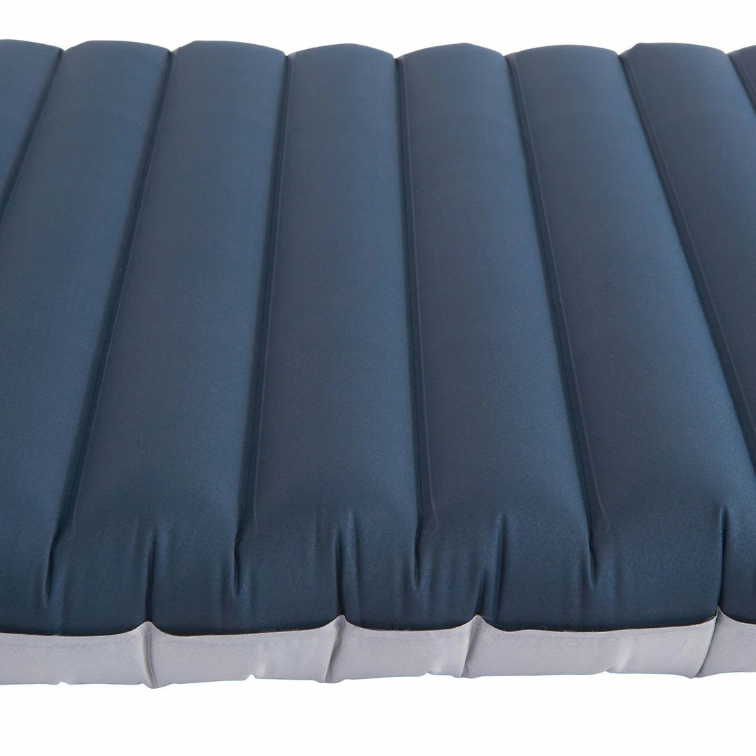 The “ideal” inflation for this type of mattress is generally “moderate” inflation (bar or psi) which allows you to feel the ground under your buttocks when sitting on the mattress.