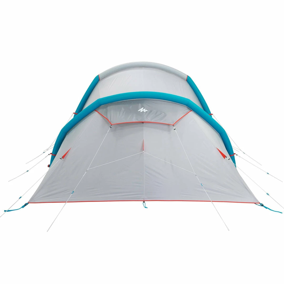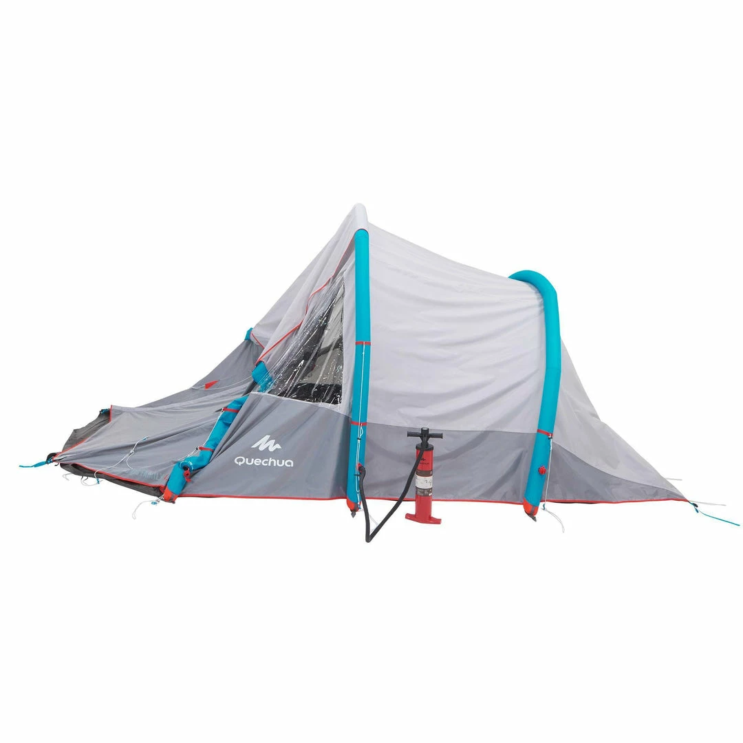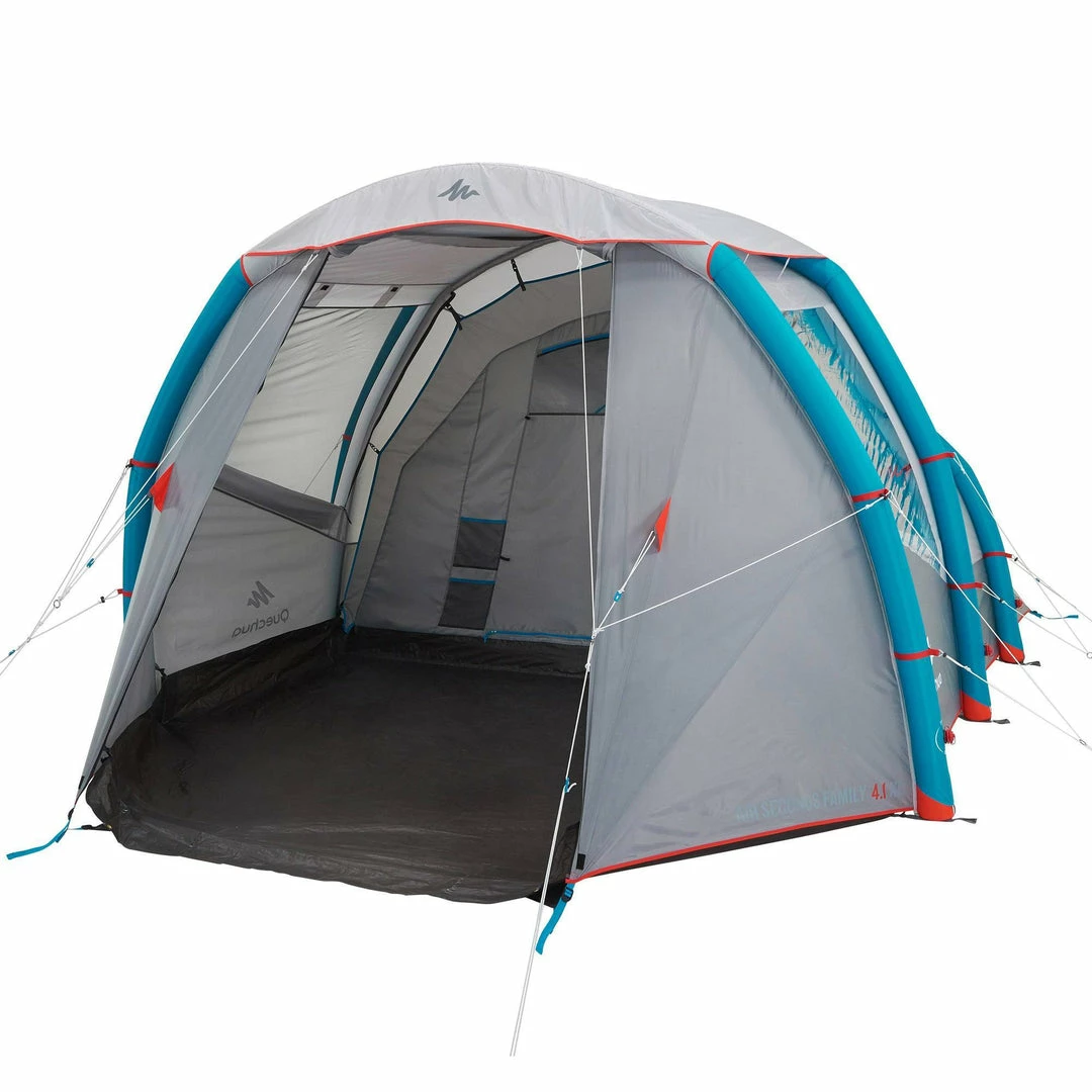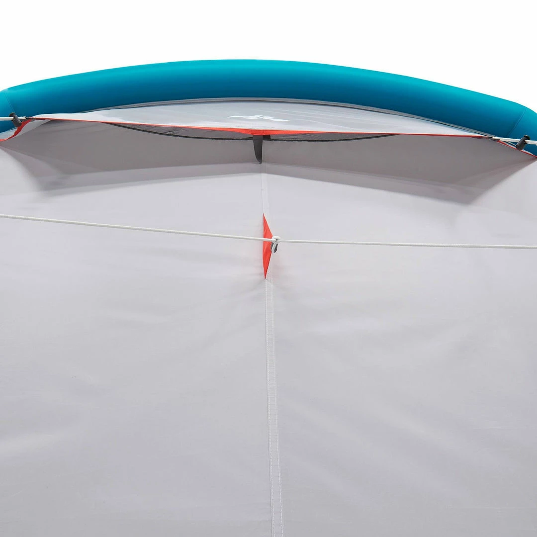 Inflatable all-in-1 structure with pre-assembled bedroom and fly sheet.