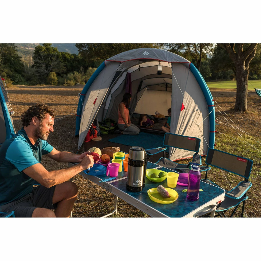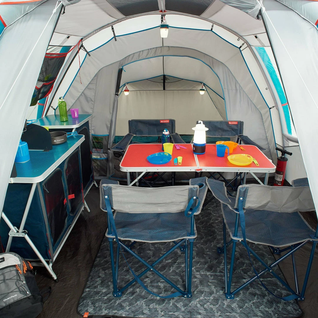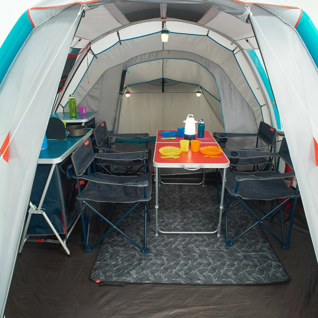 Easy assembly/dismantling : Very quick to pitch: all-in-1 inflatable structure and pre-assembled rooms.