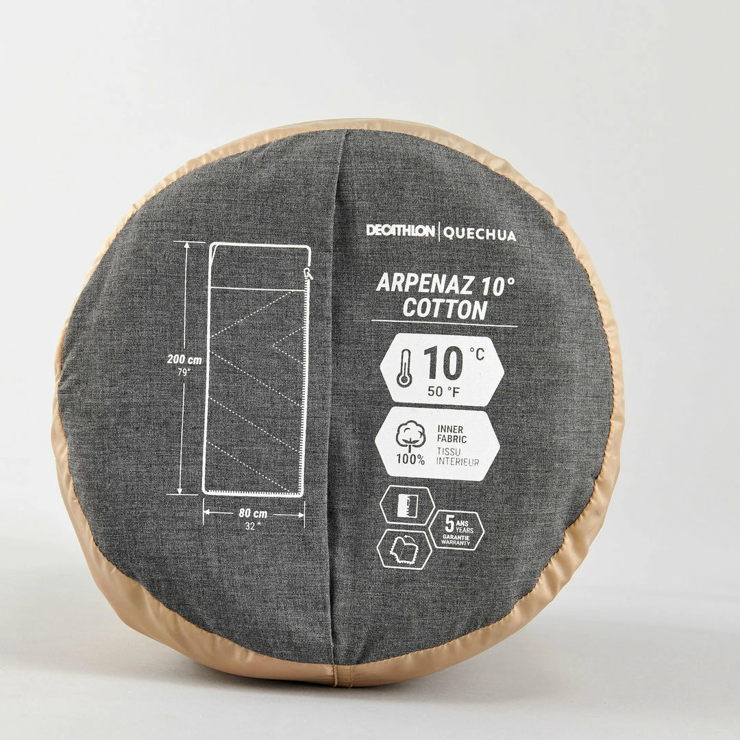Our camping enthusiasts developed this Arpenaz 50° Cotton sleeping bag so that you can sleep comfortably when camping at temperatures of around 50°F/10°C.