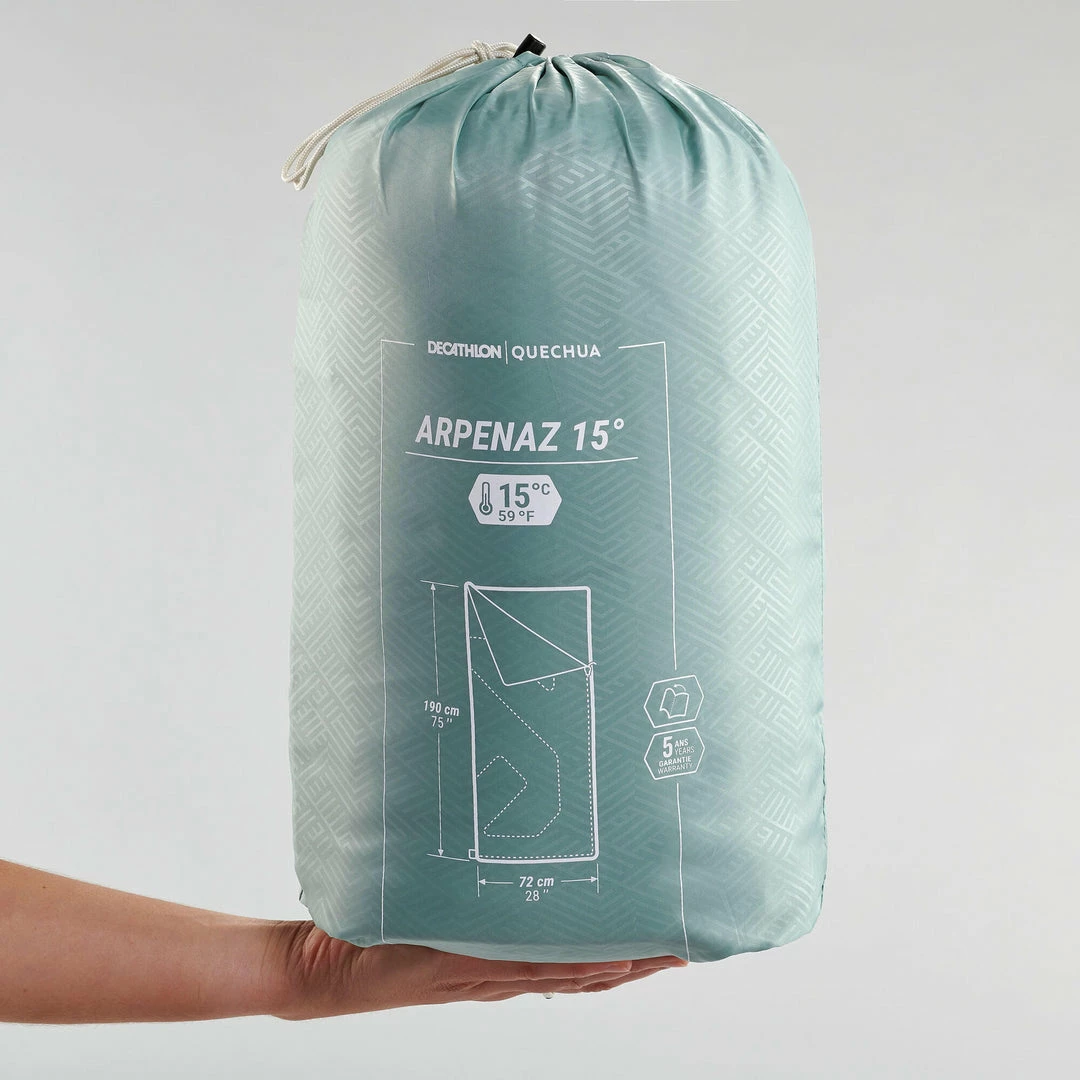 Our camping designers have developed this Arpenaz 59°F/15°C sleeping bag to sleep comfortably when camping in temperatures close to 59°F/15°C.