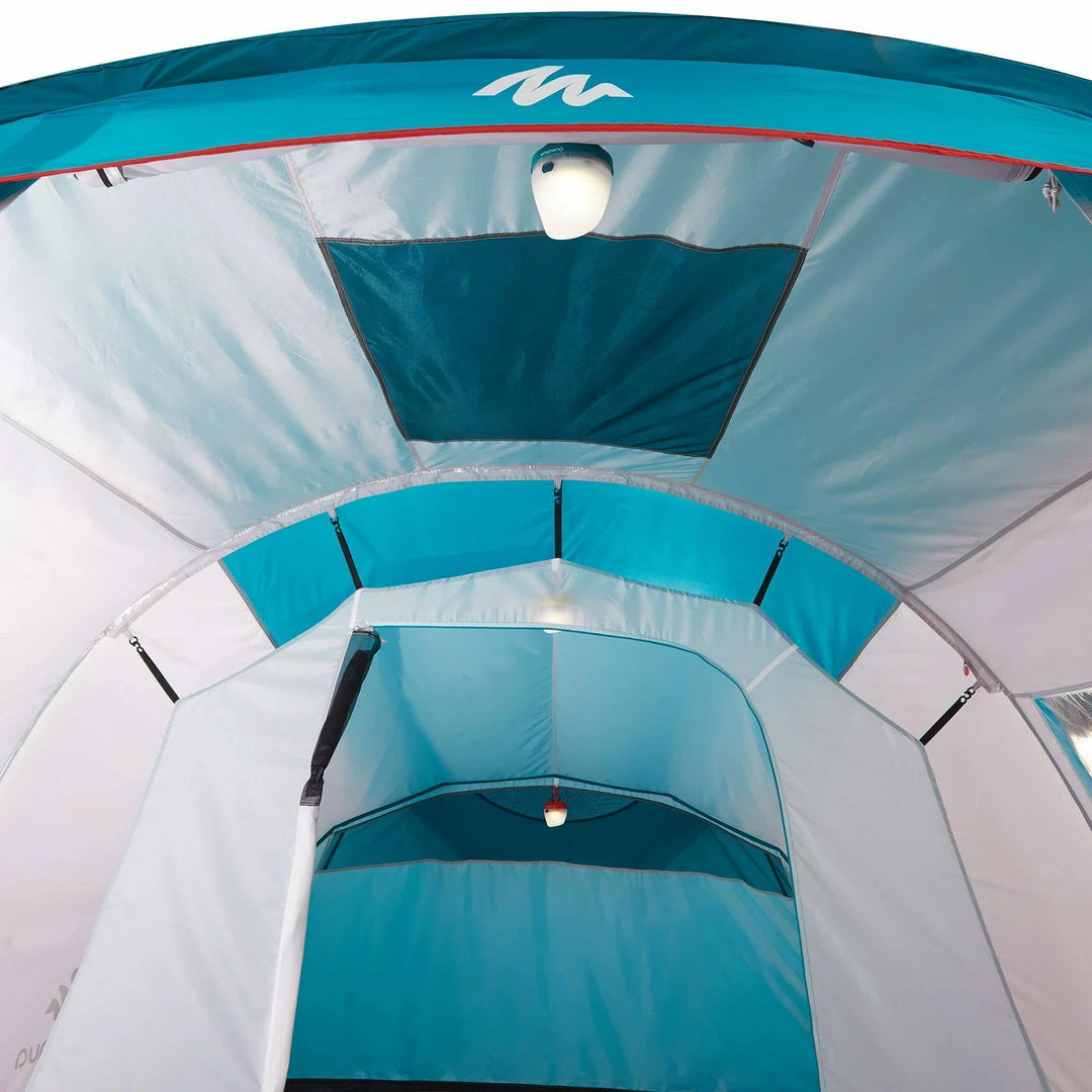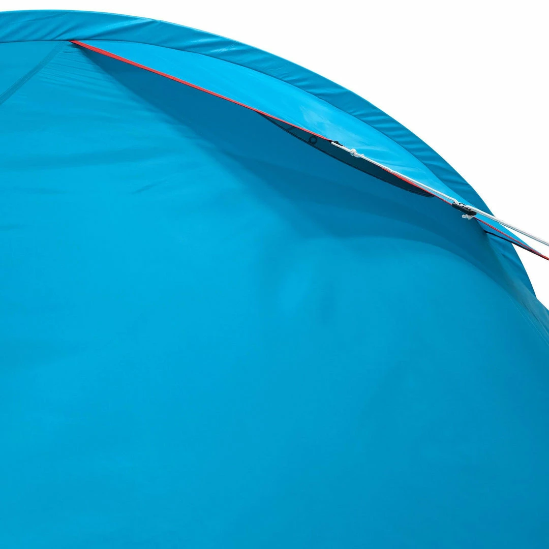 Like all Quechua tents, the waterproofing has been carefully designed, laboratory checked with the WHOLE TENT tested under 200 liters of water per hour and per mยฒ (200 mm of rain per hour!) and during our test missions. — 2000 mm polyurethane-coated polyester – Seams sealed with thermobonded strips – Polyethylene groundsheet 4.9 oz / mยฒ 5000 mm of resistance.