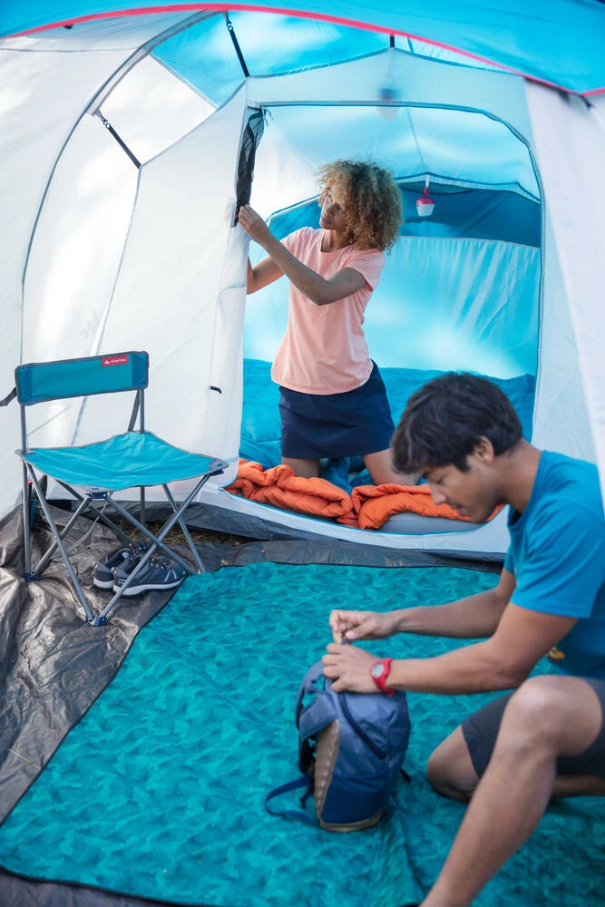 Simple assembly for this 4-person tent with 1 bedroom and a high living room with groundsheet cover.