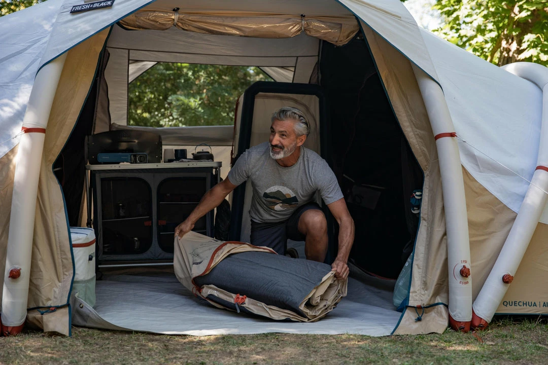 We recommend removing and unrolling your mattress as soon as you set up camp. Leave the valve open to make pre-inflation easier. A self-inflating mattress inflates itself up to about 80%. You will need to do the rest yourself, so you can adjust the pressure to your desired comfort level.