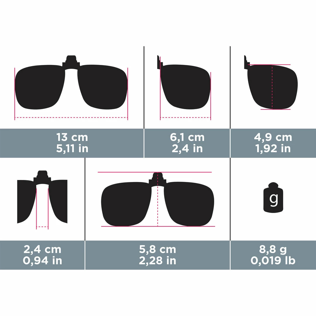 Clip-on designed for hiking in very sunny weather. Category 3 polarizing lenses – 100% UV protection.