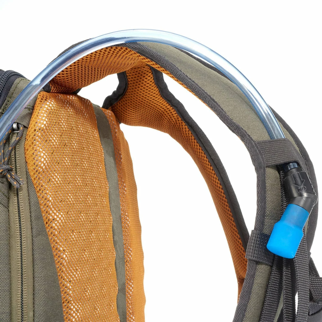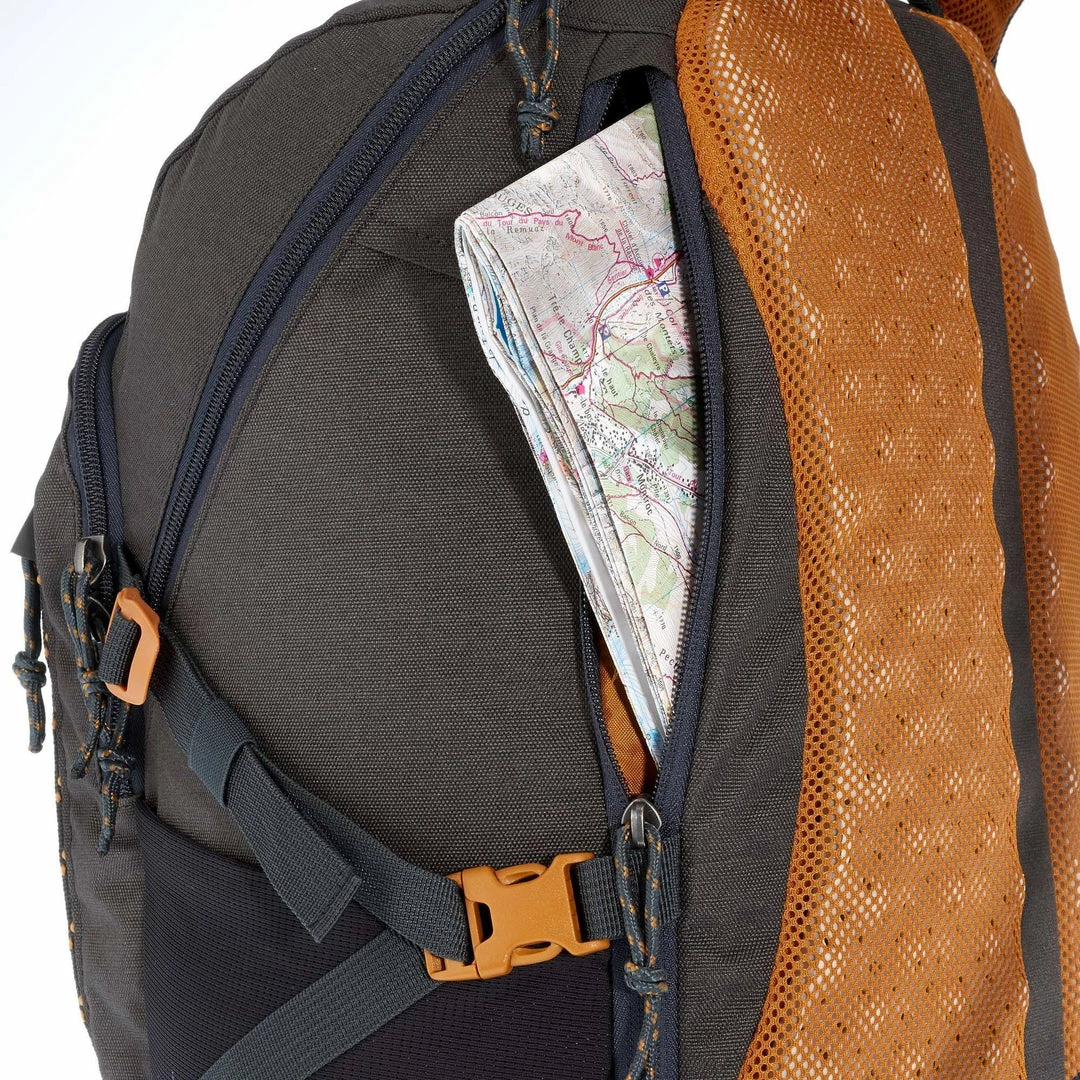 Place your heavier items at the bottom. Pack your clothes around these items. Keep a rainproof jacket and fleece close at hand. Place small items for daily use (sun cream, map, glasses, etc.) in the pockets. If you have a water bag, this should be placed in the pocket provided for this, which is along the back. Place your water bottle in the external pockets provided specifically for this.