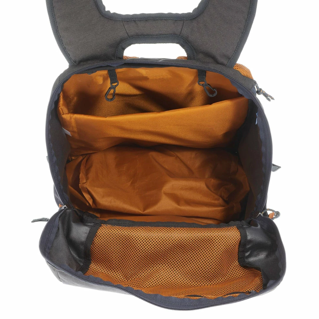 Carrying comfort : Foam-padded back and straps. Chest strap and waist belt. Thumb loops.