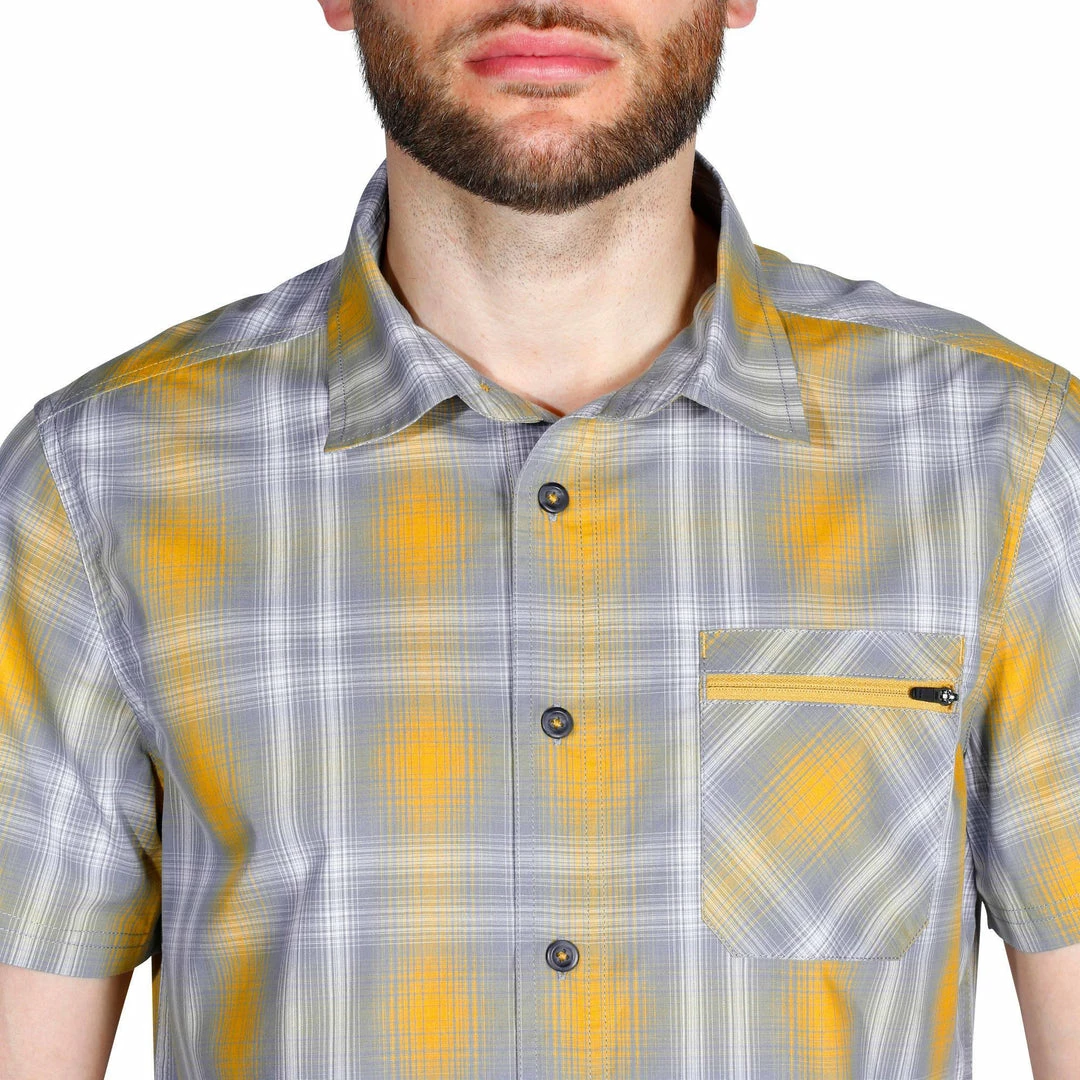 The shirt is made of a so-called WOVEN fabric. Unlike the KNIT fabric of a T-shirt for example, a woven fabric will not stick to the skin. Consequently, selecting a shirt rather than a T-shirt gives you a more ventilated garment in which there is more air flow than a T-shirt.