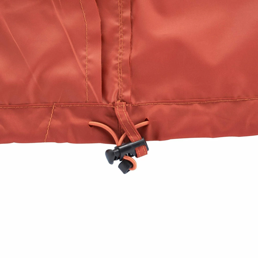 Adjustable hood with draw cords. Waist tightened by an inner elastic.