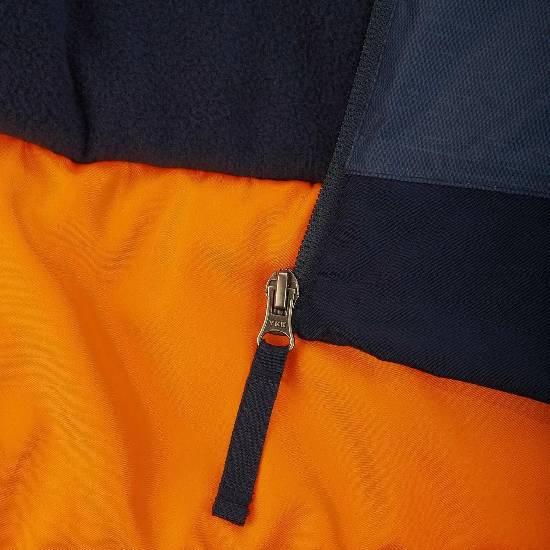 2 fleece lined hand pockets with press studs, 1 inside chest pocket