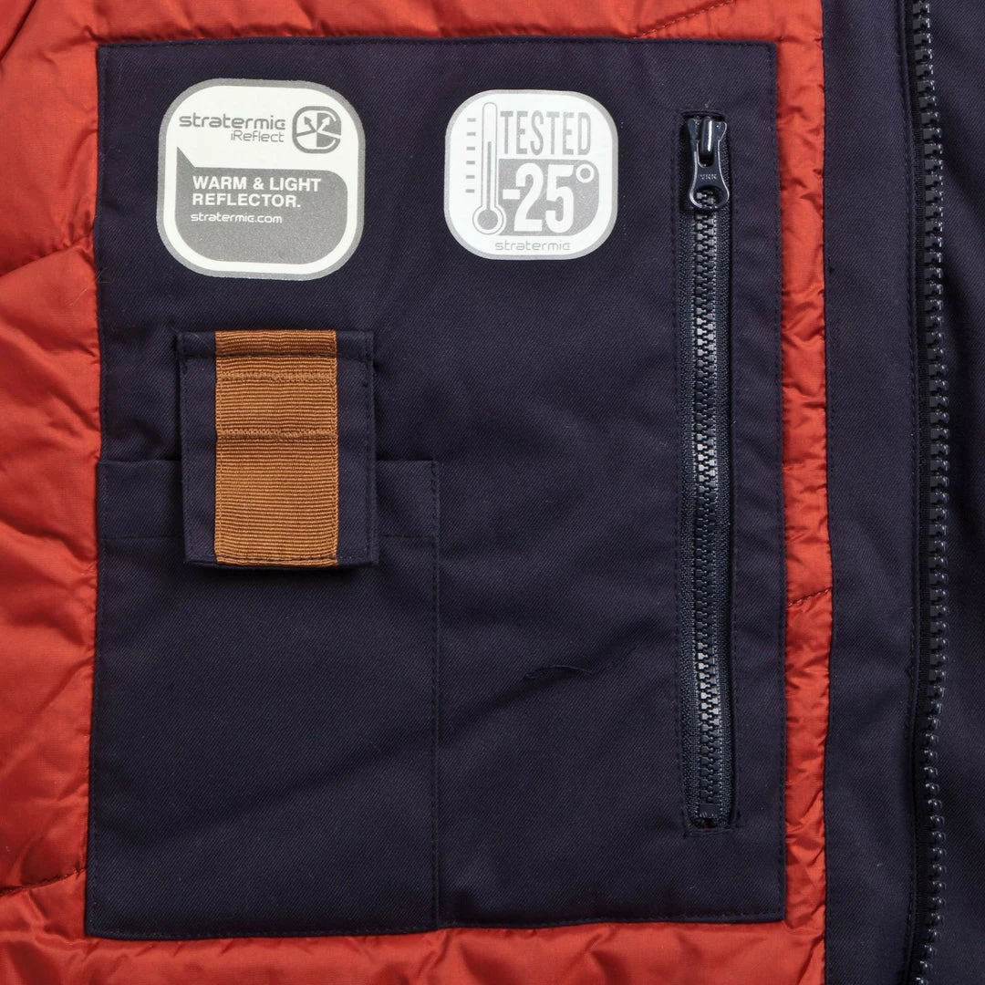 I-Reflect Technology: the aluminized I-Reflect film weighs only a few grammes but reflects 65% of the infra-red radiation emitted by the body. It improves the garment’s insulation performance by an average of 15%, significantly reducing heat loss.