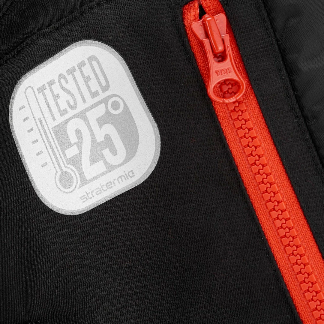 Ambient temperature is thermally neutral: the user feels neither hot nor cold. Use temperature, in accordance with standard ISO 11079, under the following conditions: Walking at 2.5 mph, no wind, cloudy. Jacket worn together with: upper body: long-sleeved T-shirt + shirt + sleeveless down gilet / lower body: tights + fleece base layer + pants / head: chapka + hood / hands: under-gloves + gloves / feet: ski socks + boots.