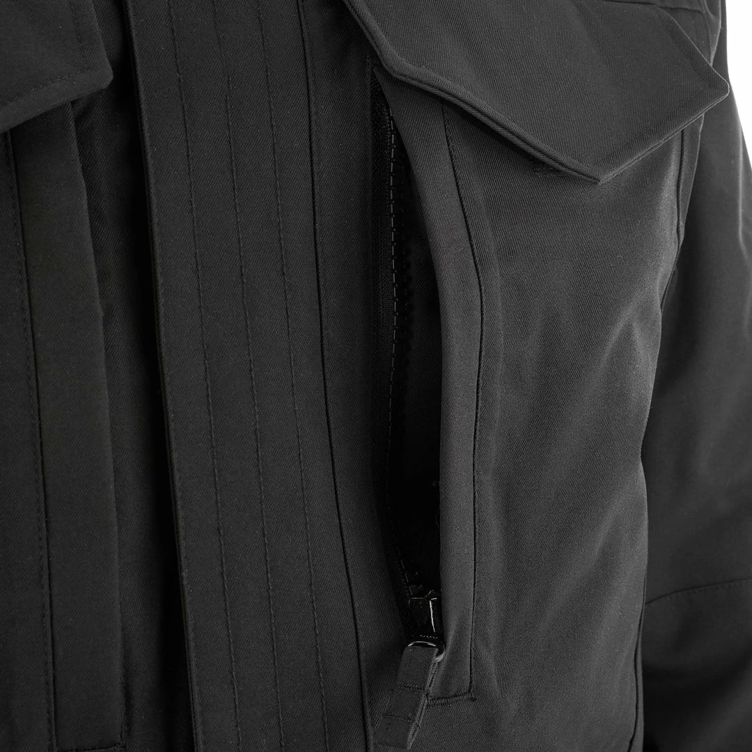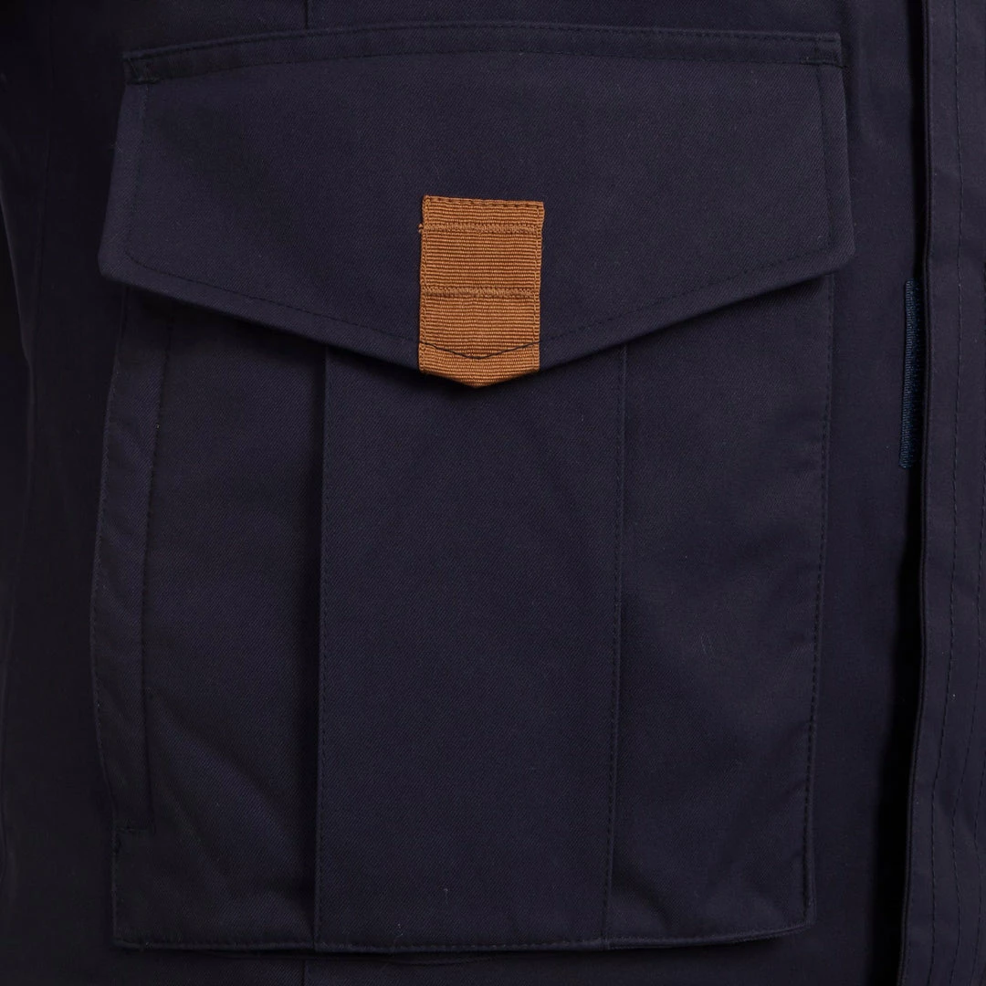 Outer: 2 hand warmer pockets + 2 pockets with snap fastening flaps + 2 chest pockets with flaps + 2 zipped chest pockets. / Inside: 1 large zipped pocket with a secure pocket for your mobile phone + 2 large “quick access” net pockets.