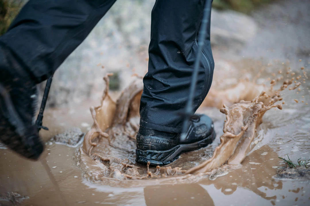 The water-repellent property of a fabric is its ability to make water run off its surface without absorbing it. In this way, the fabric does not get waterlogged and remains light, breathable and warm. The water-repellent property is obtained by applying a treatment to the outer surface of the fabric. This treatment needs to be renewed during the life of the garment (we recommend every 3 washes). All Quechua overpants have a water repellent treatment.