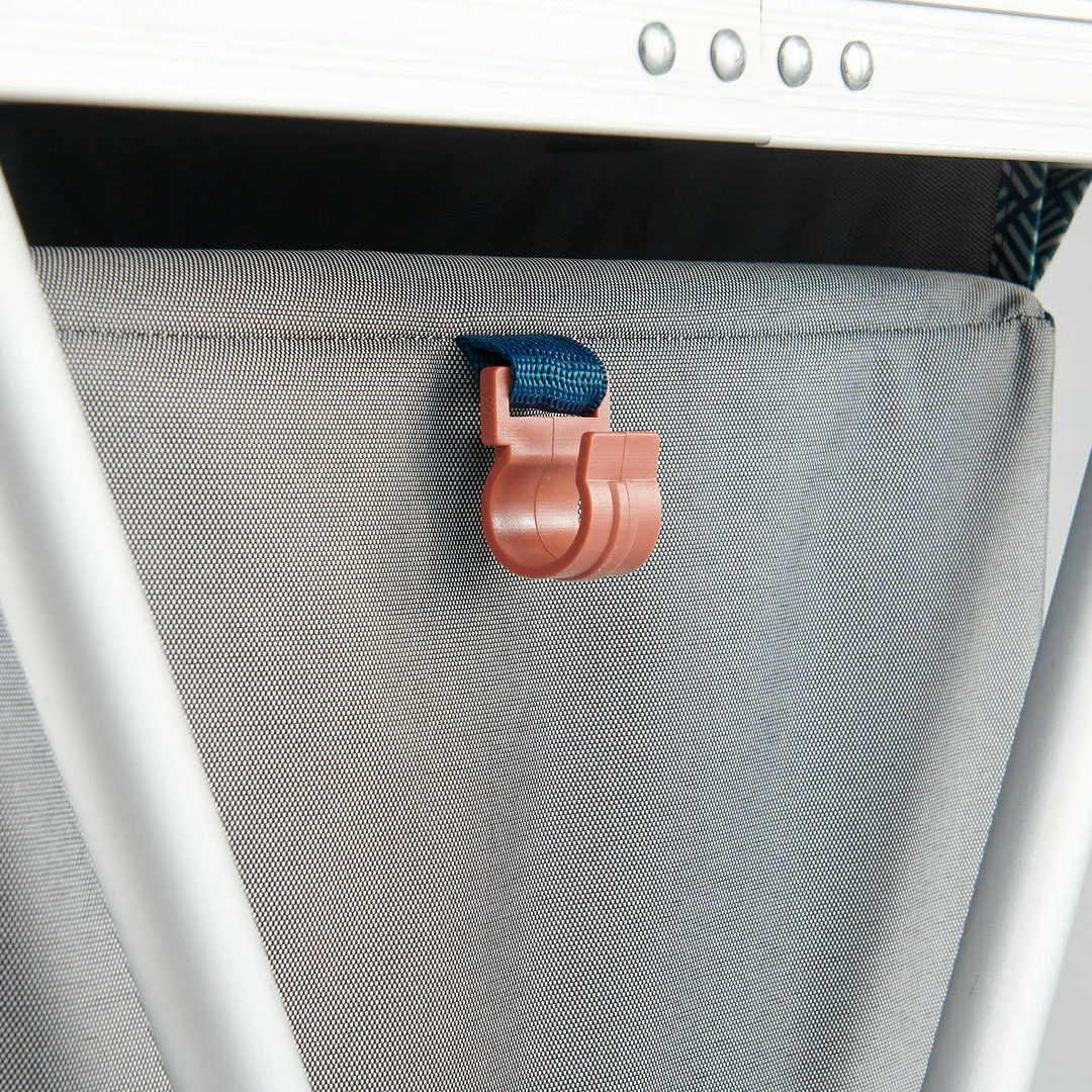 Easy to open/close : 2 clip straps for easy set up | Shelf trays can be removed