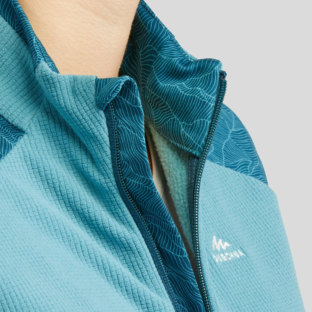 At Decathlon, we know that our production and distribution activities have a big impact on the environment. That’s why we must take action. Not everything is perfect, but by using recycled polyester to make the microgrid material of this fleece, no new oil-based resources are used. The waste is recycled into resources that can be used again. At the same time, we are working on other measures to further reduce our carbon footprint