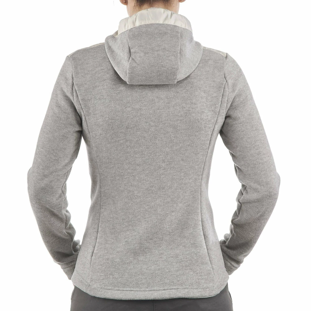 The fleece component is designed to trap air thanks to the volume created by its texture; this air acts as a natural insulator, keeping the body warm. It is the brushing of the knit fabric that traps the air.