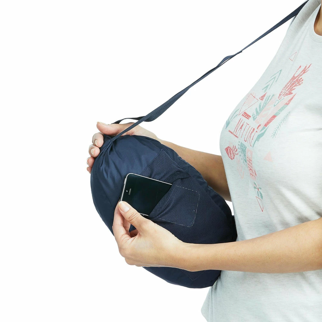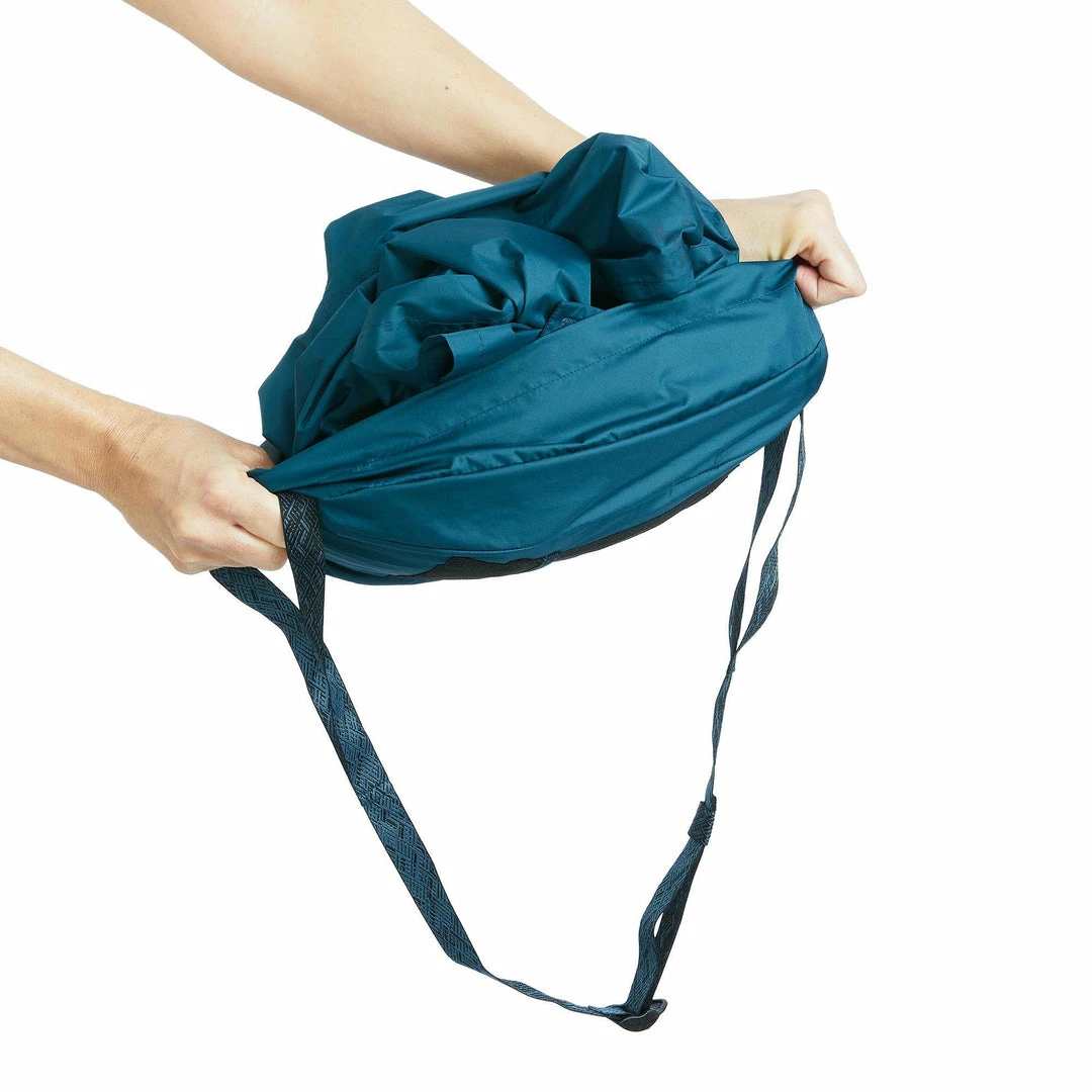 Want to go hiking without taking a backpack? This waterproof jacket can be converted into a shoulder bag. Smart construction with its mesh bag for keeping a phone close at hand!